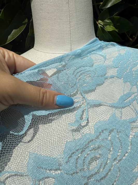 Light Blue Floral Mesh Lace Overlay Polyester Spandex Stretch Lace "Ice Rose"
