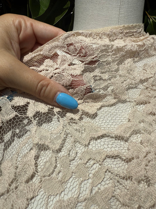 Ivory Floral Mesh Lace Overlay Polyester Spandex Stretch Lace "Antique Lace "