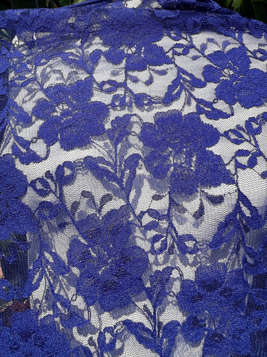 Blue Mesh Lace Overlay Polyester Spandex Lace "Floral Ocean Lace"