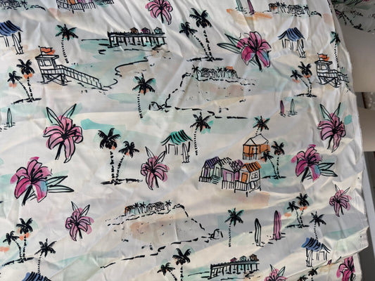Black Orange Blue Pink Purple Ivory Tan Floral Beach Palm Tree Rayon Satin Woven "Island Breeze"
