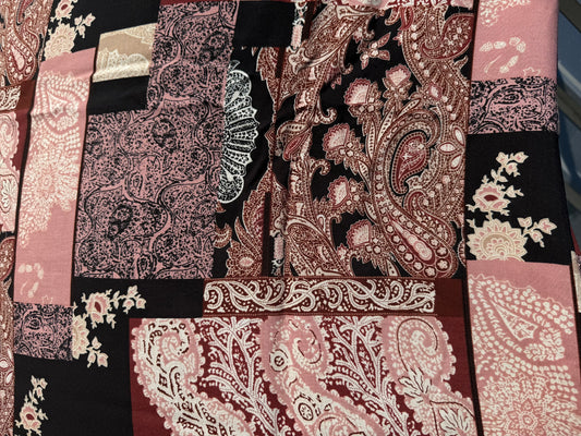 Black Beige Burgundy Paisley Print Rayon Crepe Woven "Annie Arizona"