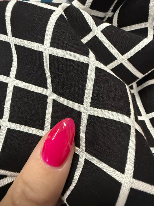 Black White Grid Square Print Rayon Crepe Woven "Grid Screen"