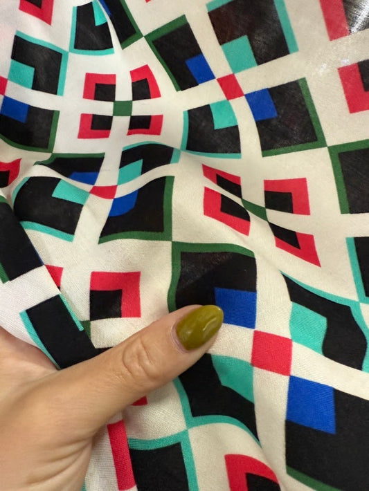 Green Blue Pink Black White Geometric Rayon Challis "Mod Mood"