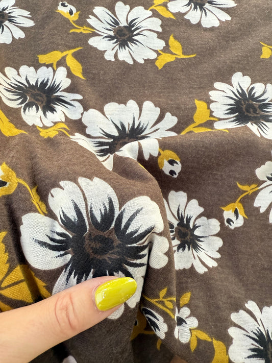 Brown Yellow Black White Floral Light Weight Rayon Polyester Spandex Jersey "Eric's Family Den"
