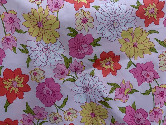 Pink Yellow White Orange Green large Floral Print Vintage Cotton Spandex Poplin Woven "Blooming floral"