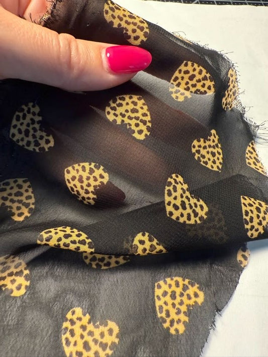 Black Yellow Heart Leopard Print Lightweight Polyester Chiffon Sheer "Leo in Love"