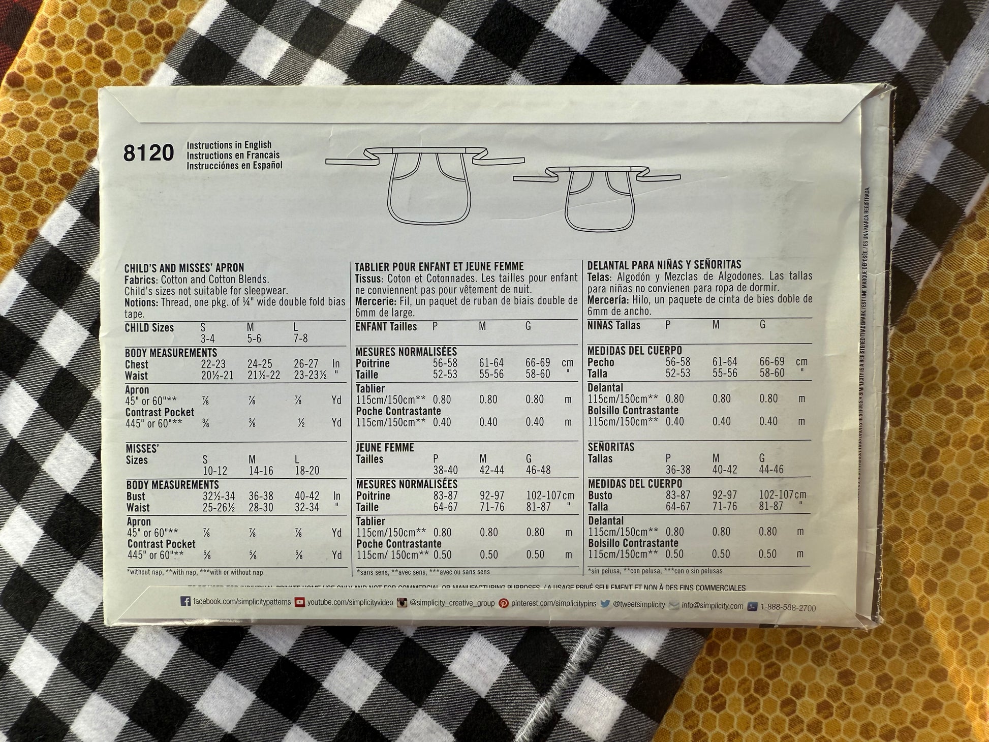 🧵 1. Apron Sewing Kit — Plaid OR Food Inspired-Print Fabric