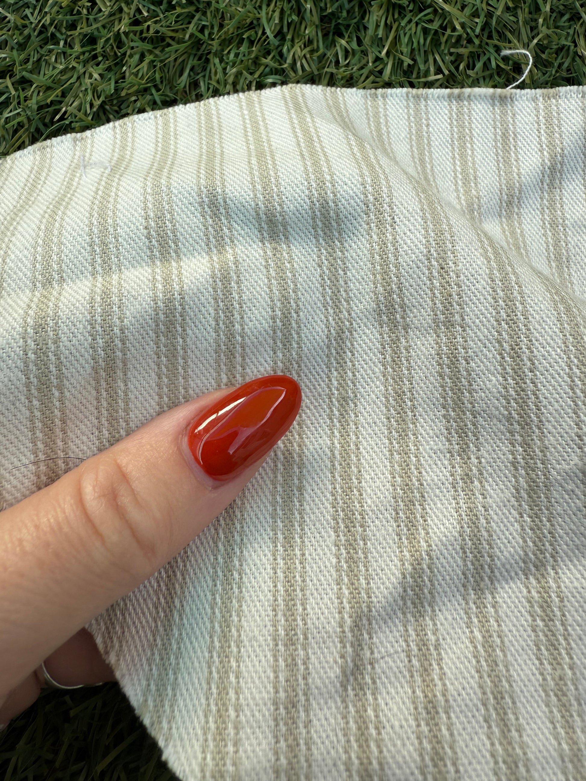 Introducing "Driftwood"—a versatile cotton twill that's perfect for makers who love a good project! This 100% cotton fabric boasts a beautiful beige and white ticking stripe with just the right weight for pillows, home décor pieces, structured aprons, or even a tailored jacket. Whether you're a seasoned Sewing Nerd or exploring your next creative adventure, this durable twill delivers professional results. Sold by the yard, it's your ticket to handmade pieces you'll actually wear and display with pride.