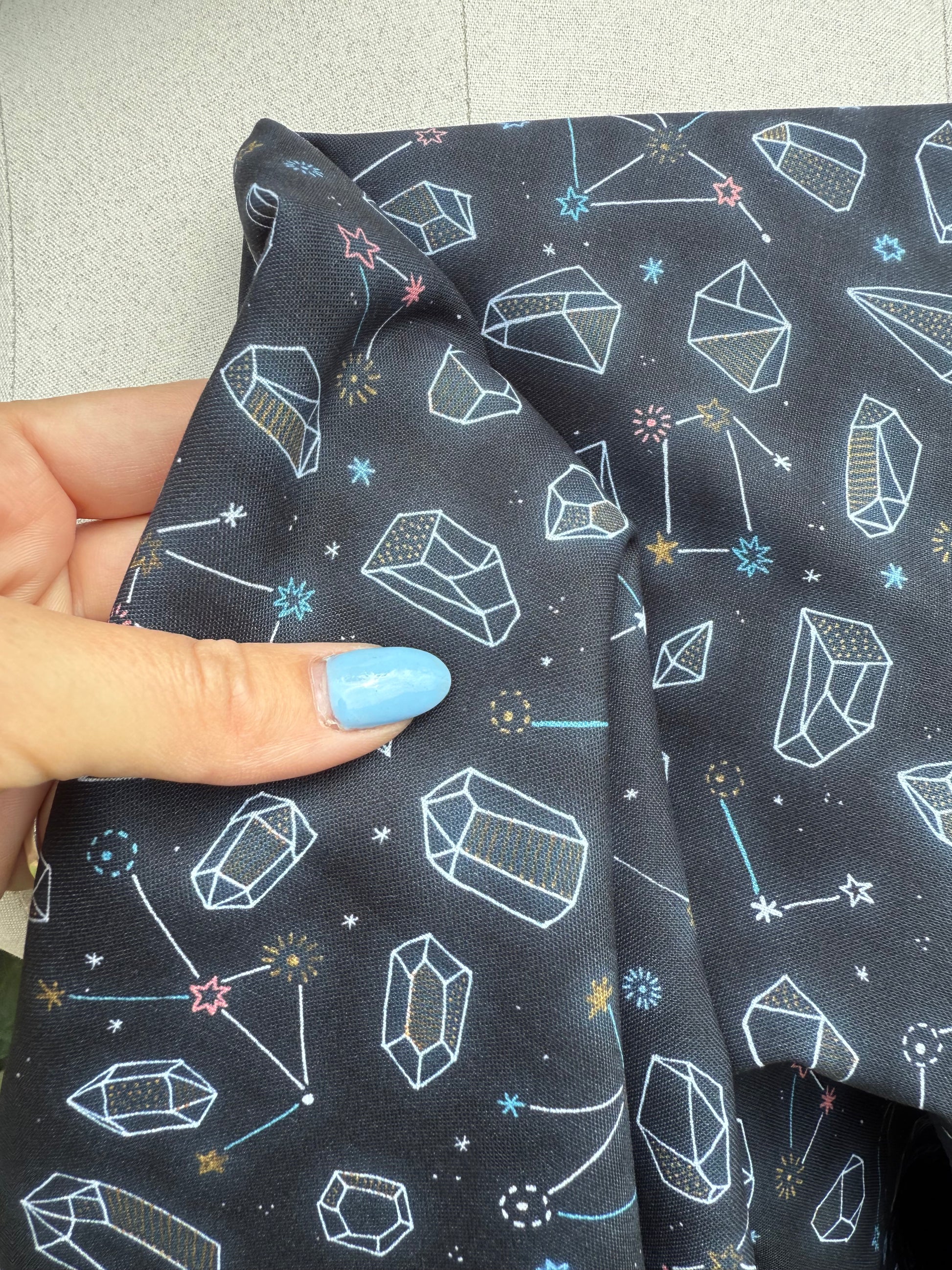 Add a touch of cosmic charm to your sewing projects with this Black Crystal Star Constellation Print Cotton Poplin. Sold by the yard and available in limited quantities, its sparkling constellation design is perfect for creating moody, magical pieces that shine with personality. Grab yours before it’s gone and let your creativity sparkle!