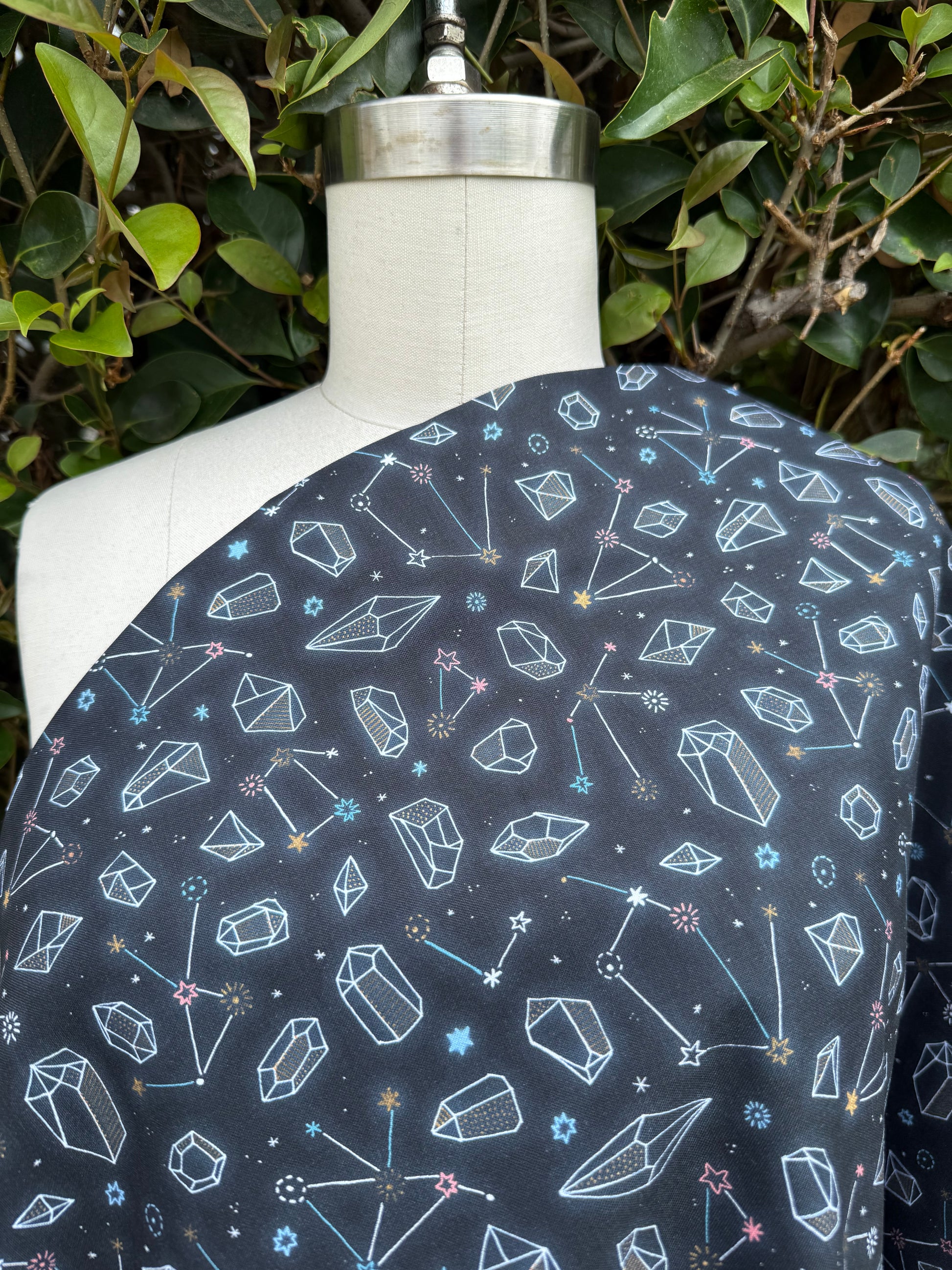 Black Crystal Star Constellation Print Cotton Poplin Woven "Have a Crystal"