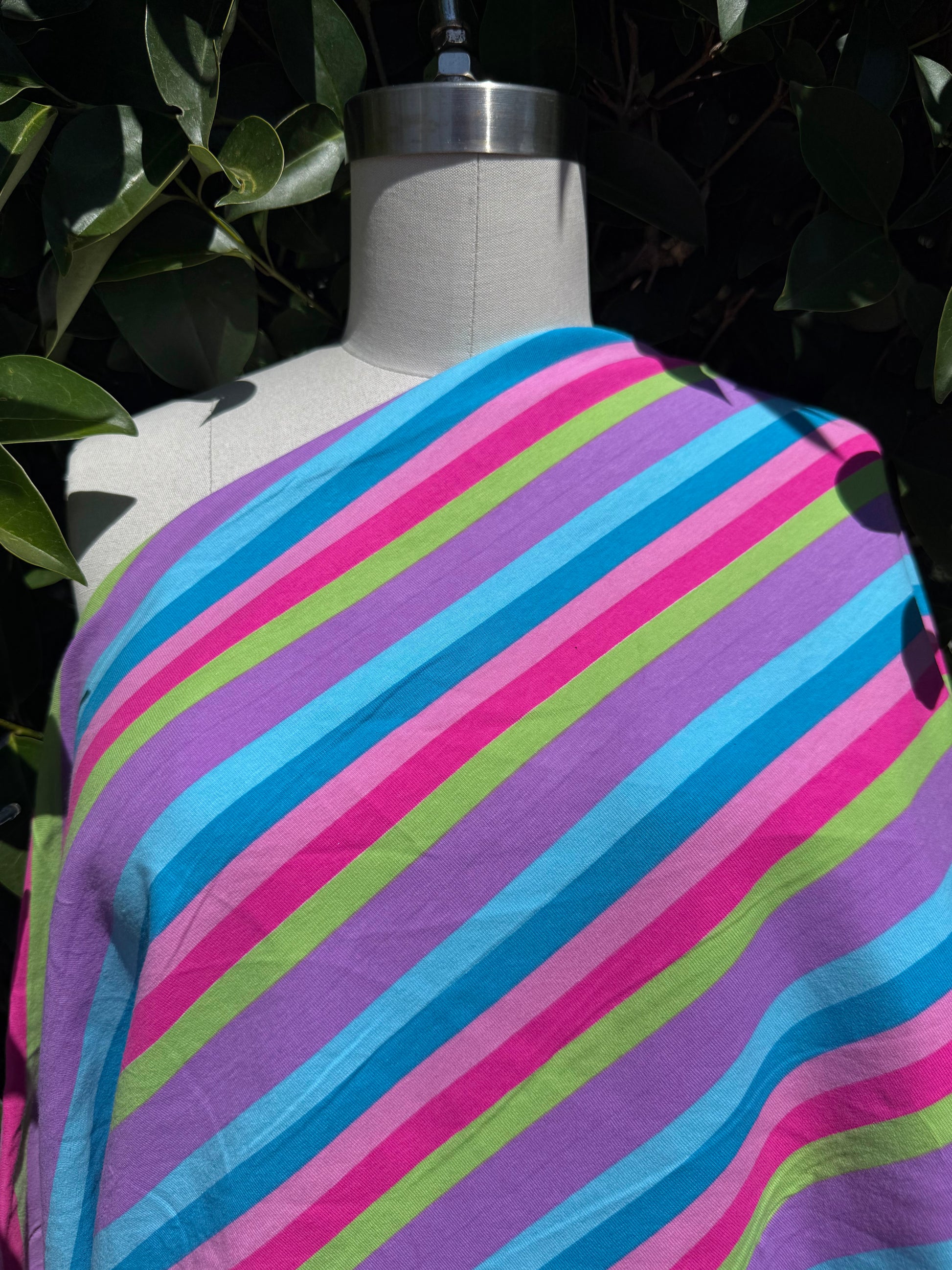 Blue Green Pink Purple Horizontal Stripe Cotton Spandex Jersey Knit "Funky Fresh"
