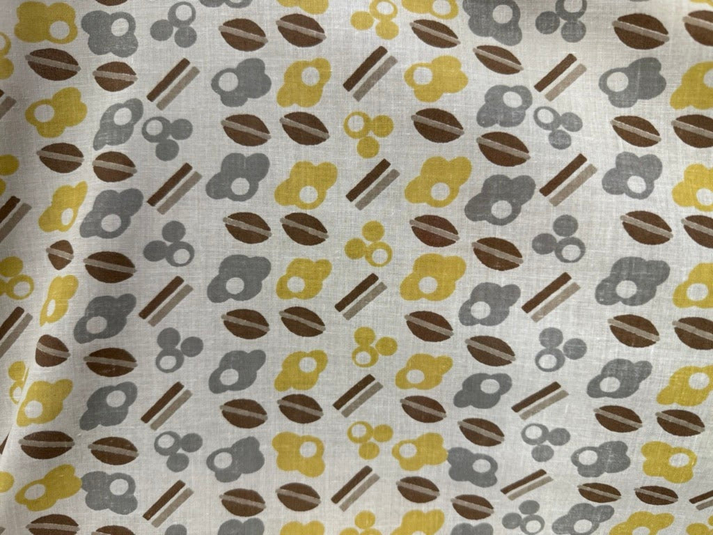 Bring a playful touch to your sewing projects with this Brown Gray Yellow Coffee-Inspired Vintage Cotton Voile. Featuring a charming vintage coffee print, this lightweight fabric is perfect for crafting unique tops and dresses that stand out. Its soft, breathable voile ensures comfort while adding a delightful coffeehouse vibe to your wardrobe.