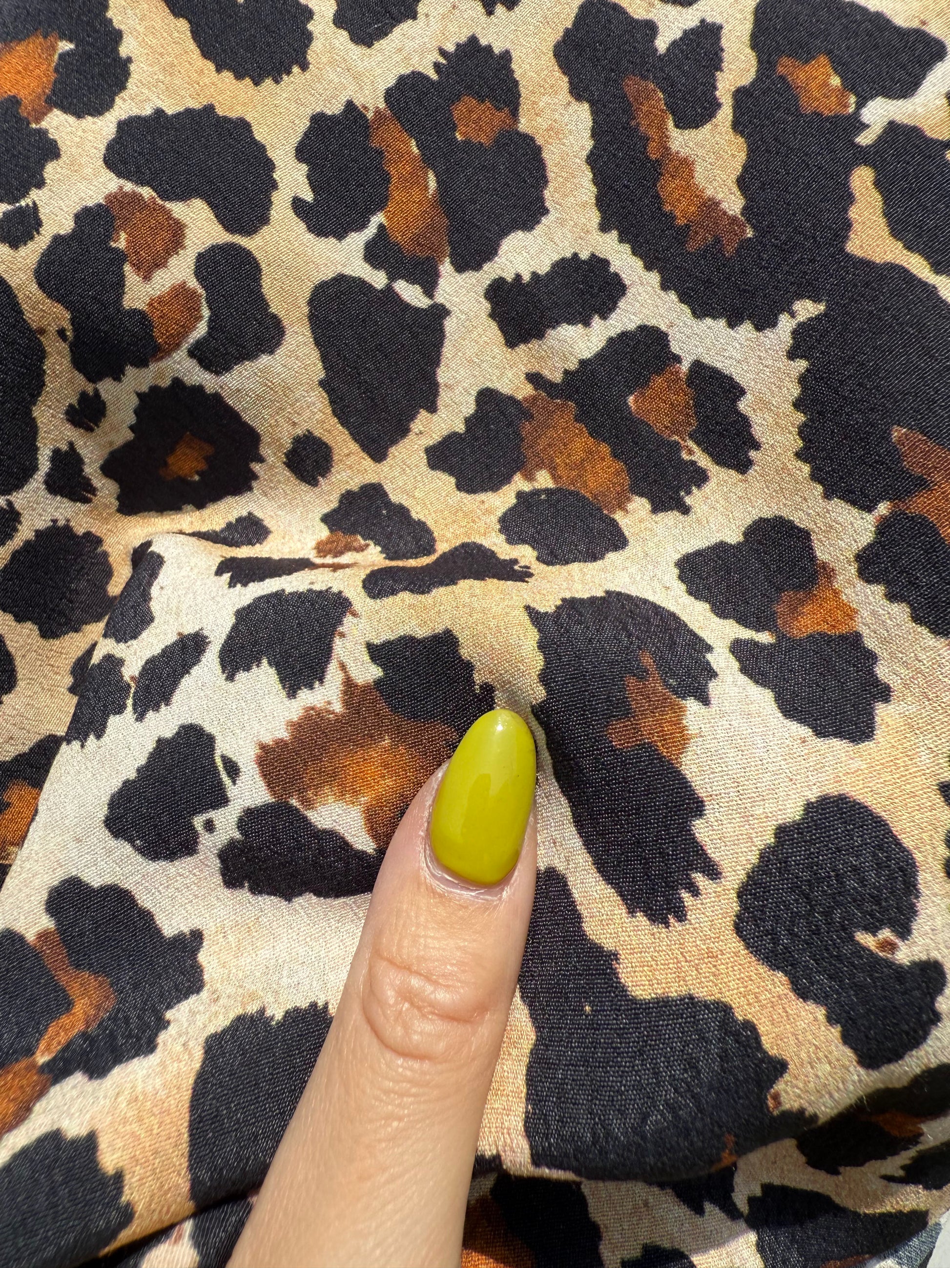 Brown Tan Black Leopard Rayon Crepe Woven "Leo Boogie"