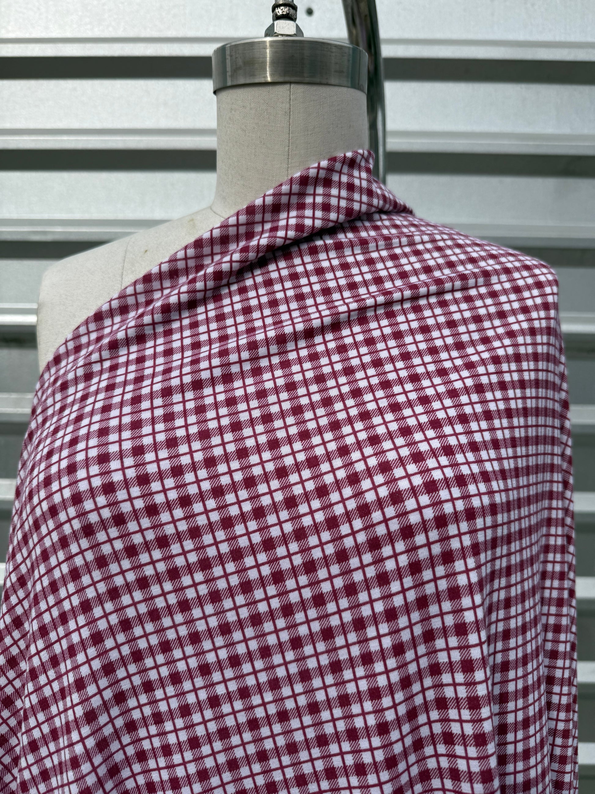 Burgundy Red White Plaid Print Cotton Spandex Jersey Knit "Pick a Berry"