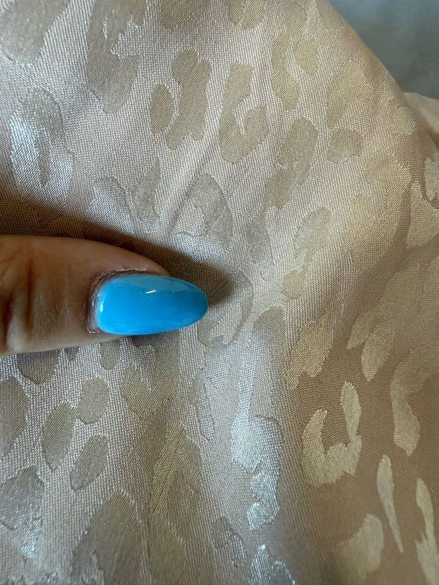 Elevate your next sewing project with this luxurious Cream Ivory Embossed Leopard Print Polyester Satin Jacquard. Sold by the yard as deadstock fabric, it blends subtle elegance with a daring wild side. The rich texture and sophisticated animal print add bold character to garments or decor, perfect for those ready to make a refined yet adventurous statement.