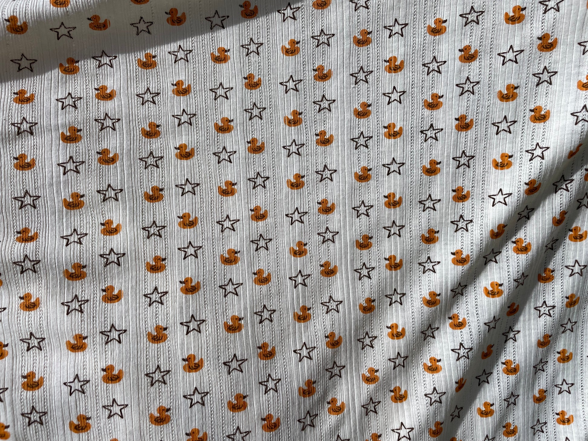 Cream Yellow Duck Star Print Pointelle Vintage Cotton Jersey "Lucky Duck"