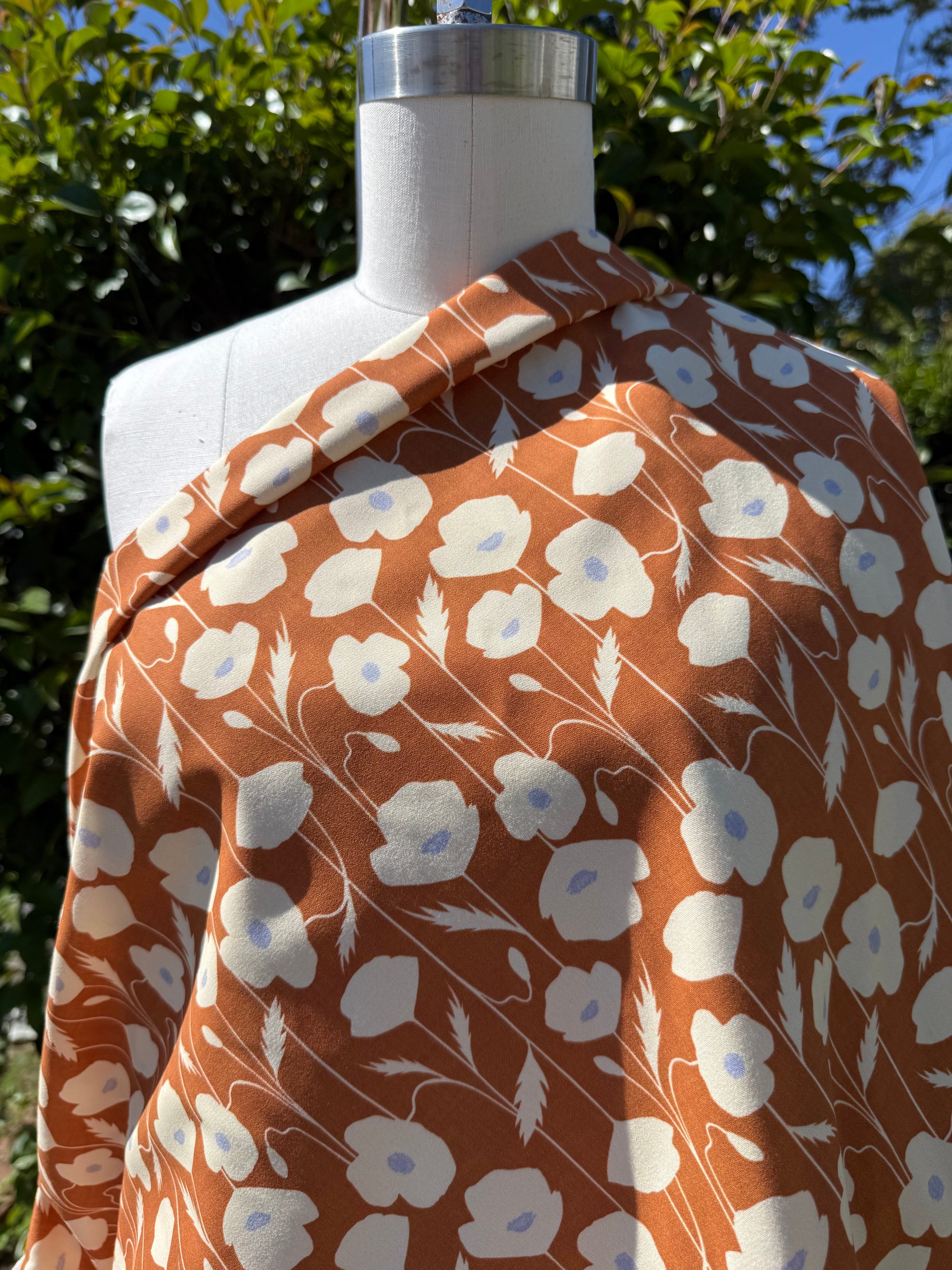 Gold Rust White Floral Print Lightweight Cotton Twill Woven "Caramel Wildflowers"