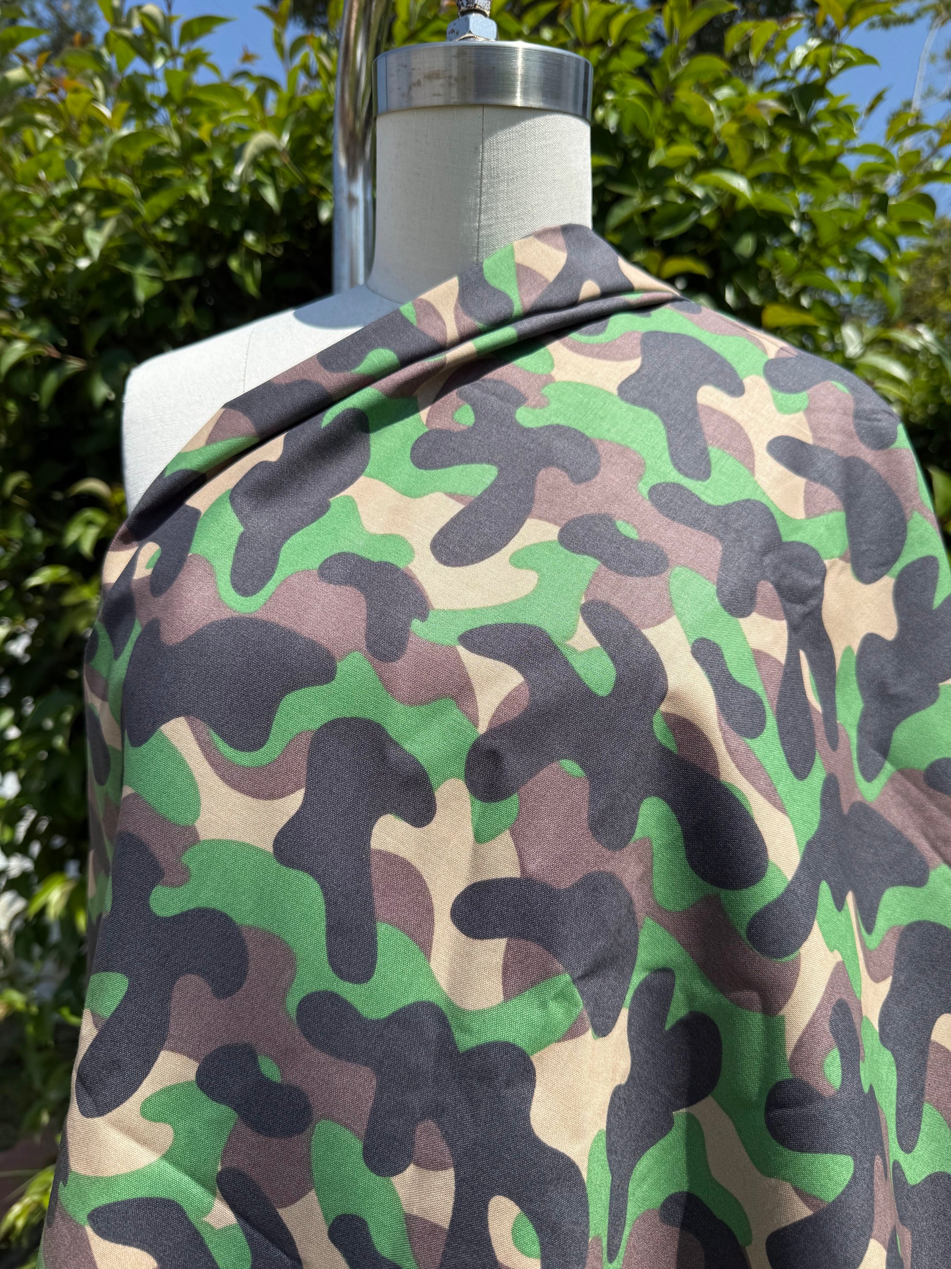 Green Black Tan Brown Camo Army Print Cotton Poplin Woven "Camo Cutie"