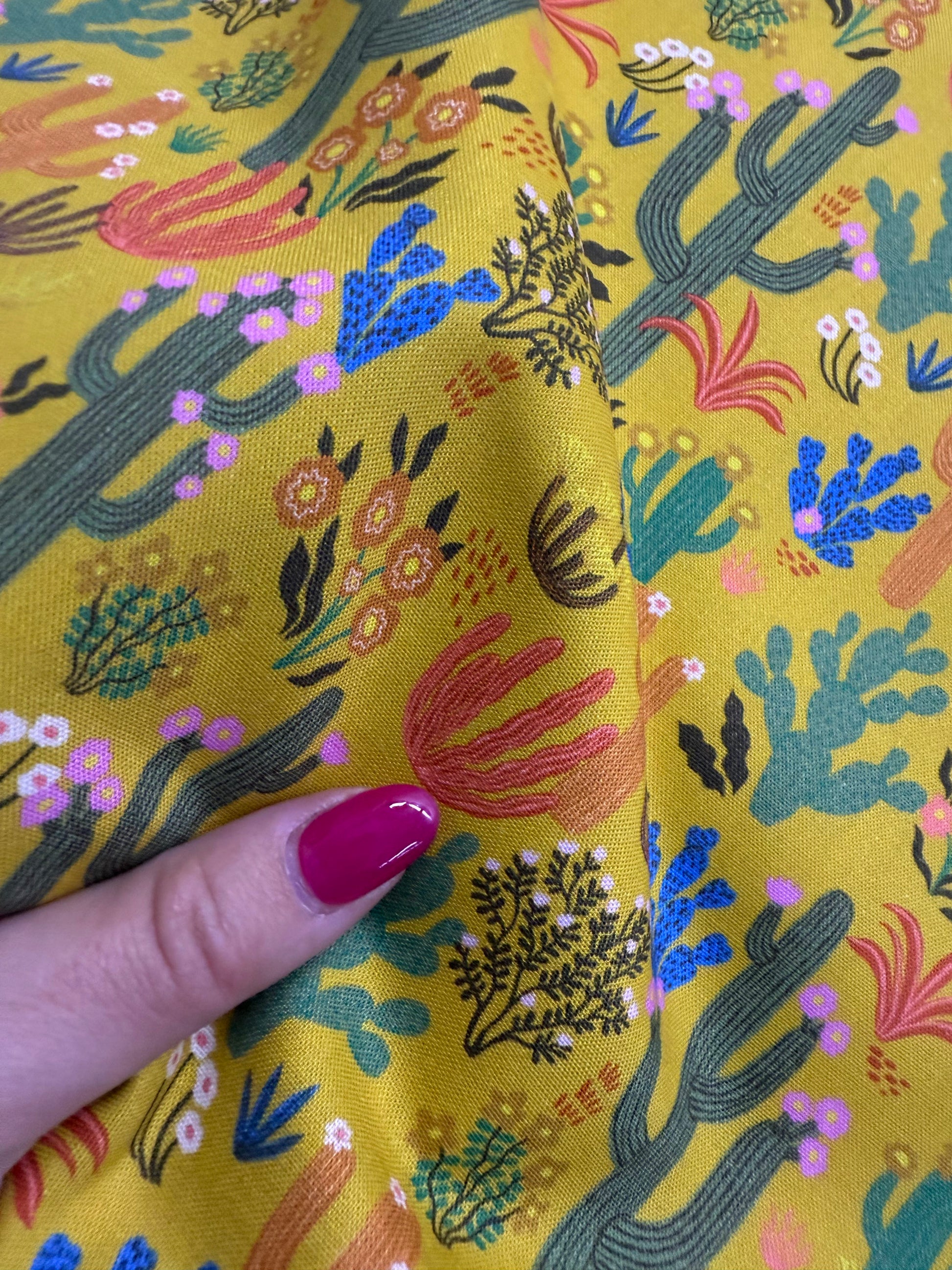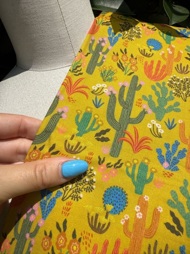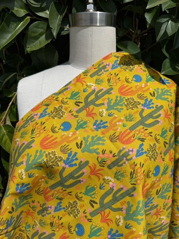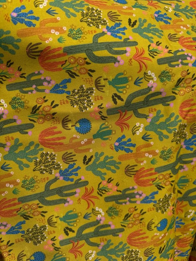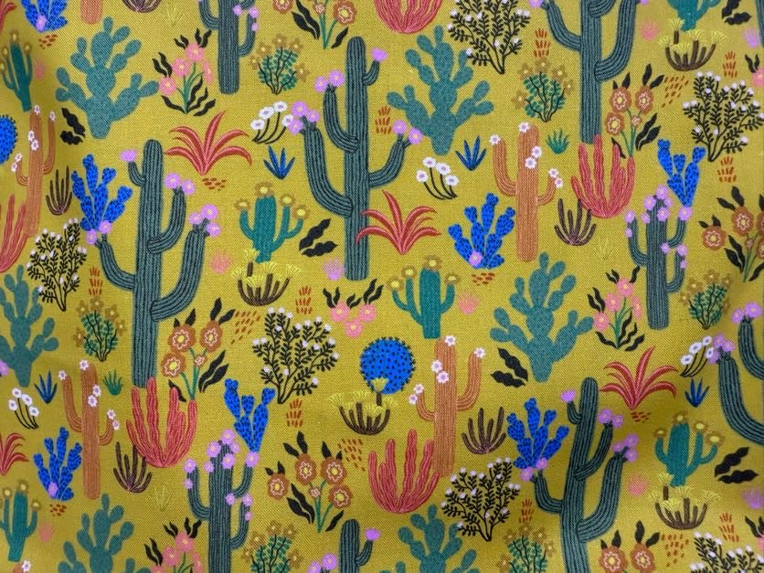 Discover the vibrant charm of our "Bright and Blooming" cotton fabric, perfect for your new sewing projects. Featuring a colorful mix of cactus and floral designs in green, white, pink, blue, orange, red, yellow, black, brown, and lavender, this versatile fabric made from natural fibers adds a lively touch to clothing, accessories, and home décor. Its breathable cotton feel ensures comfort while inspiring creativity with every stitch.