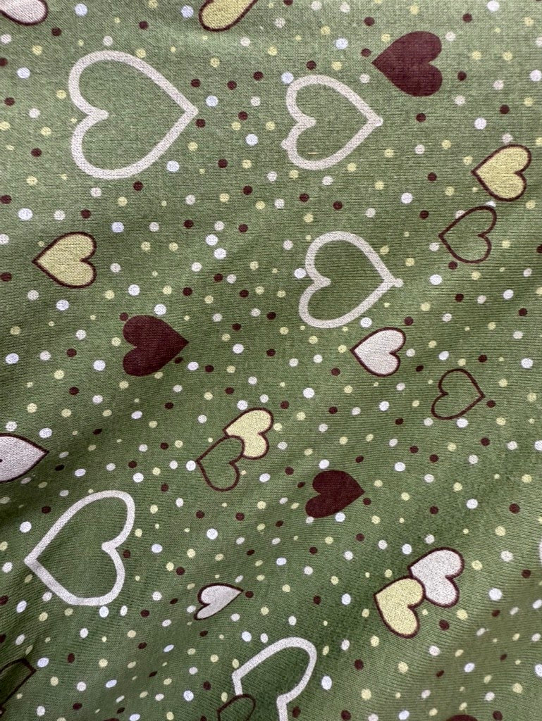 Green Yellow White Brown Hearts Dots Vintage Cotton Jersey Knit "Pop Heart Parade"