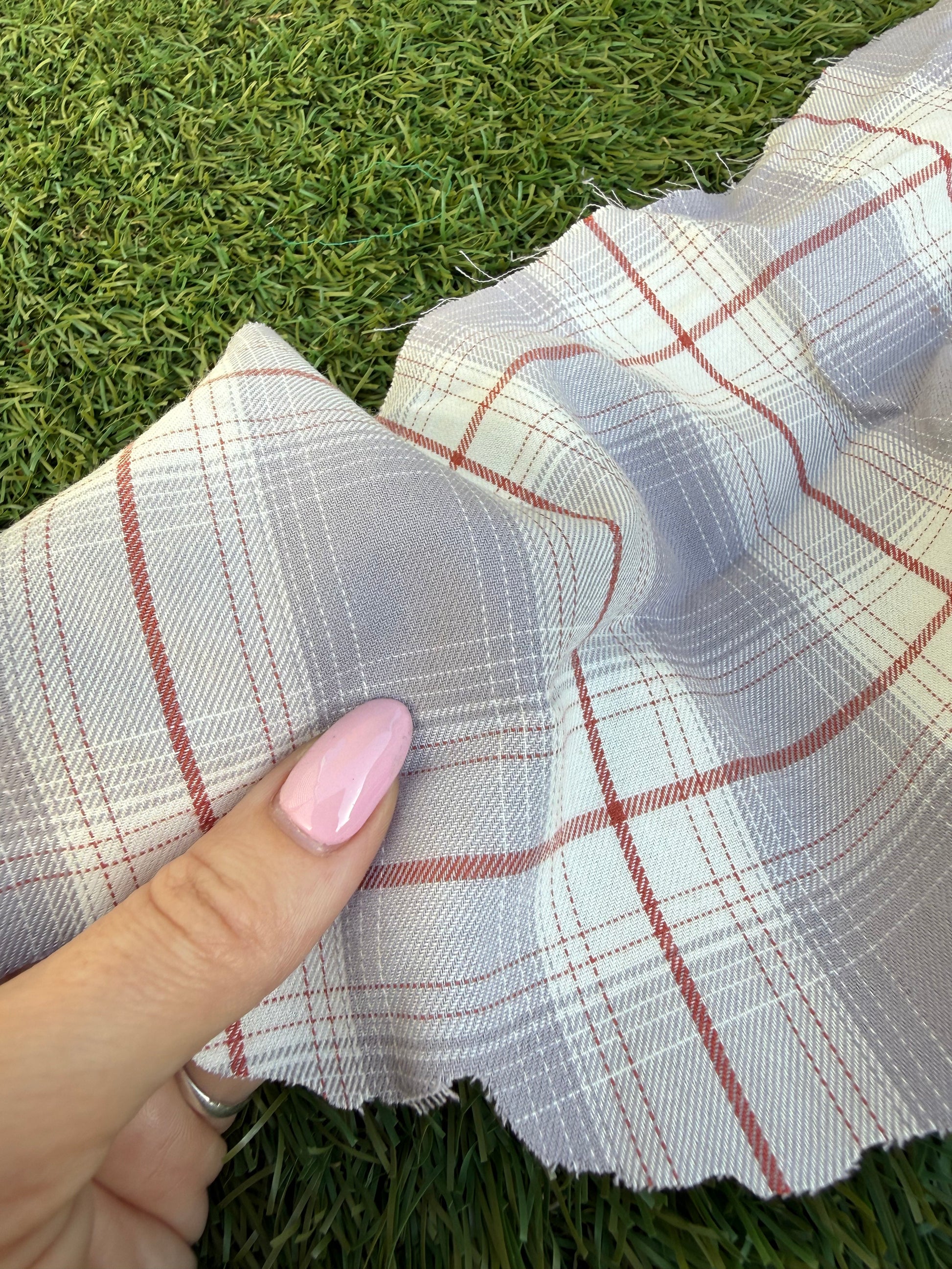 Grey White Red Plaid Cotton Poplin Woven "Sloan Harvest"