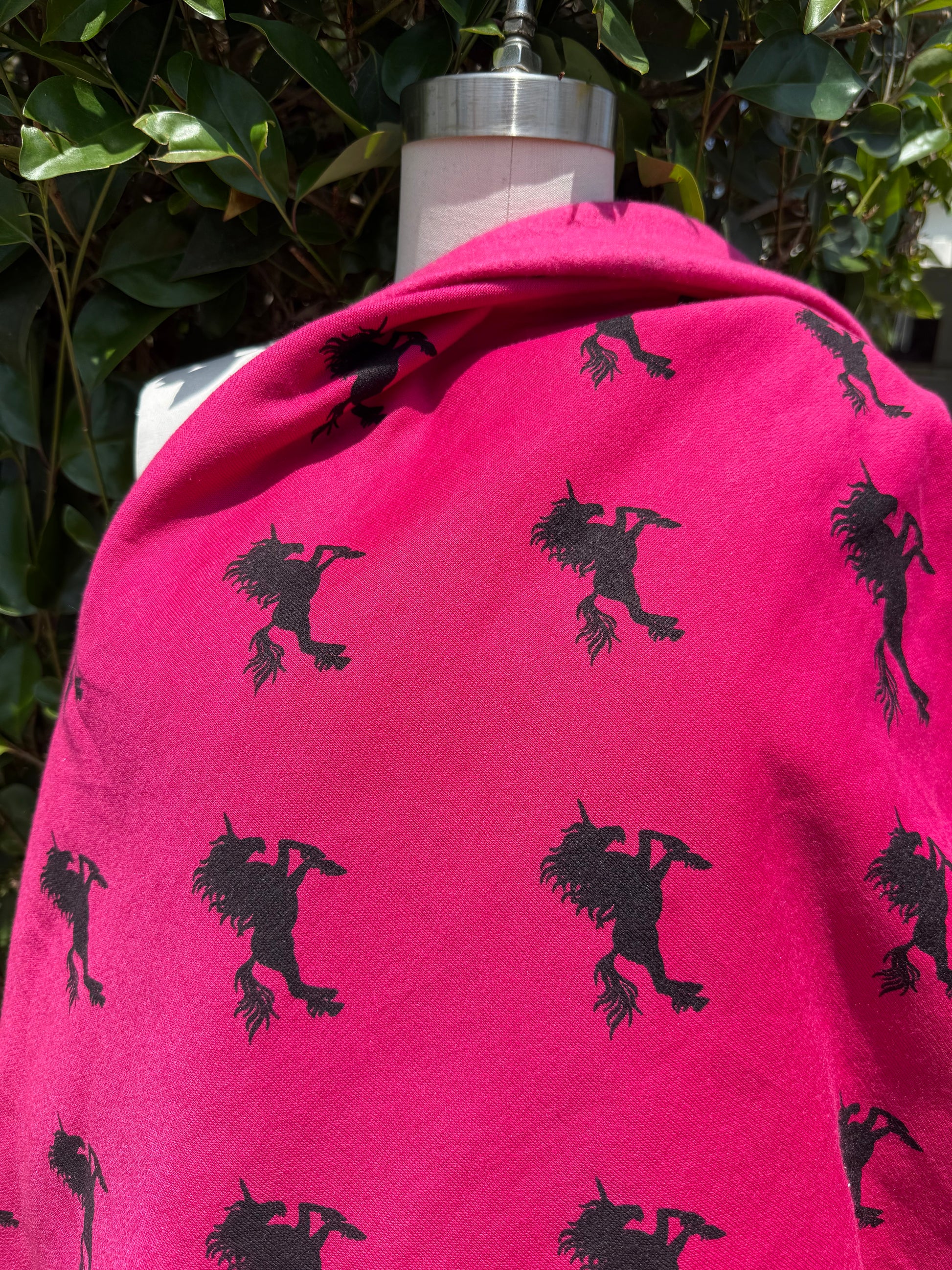 Hot Pink Black Unicorn Print Cotton Polyester Fleece "My Horn Can Pierce The Sky"