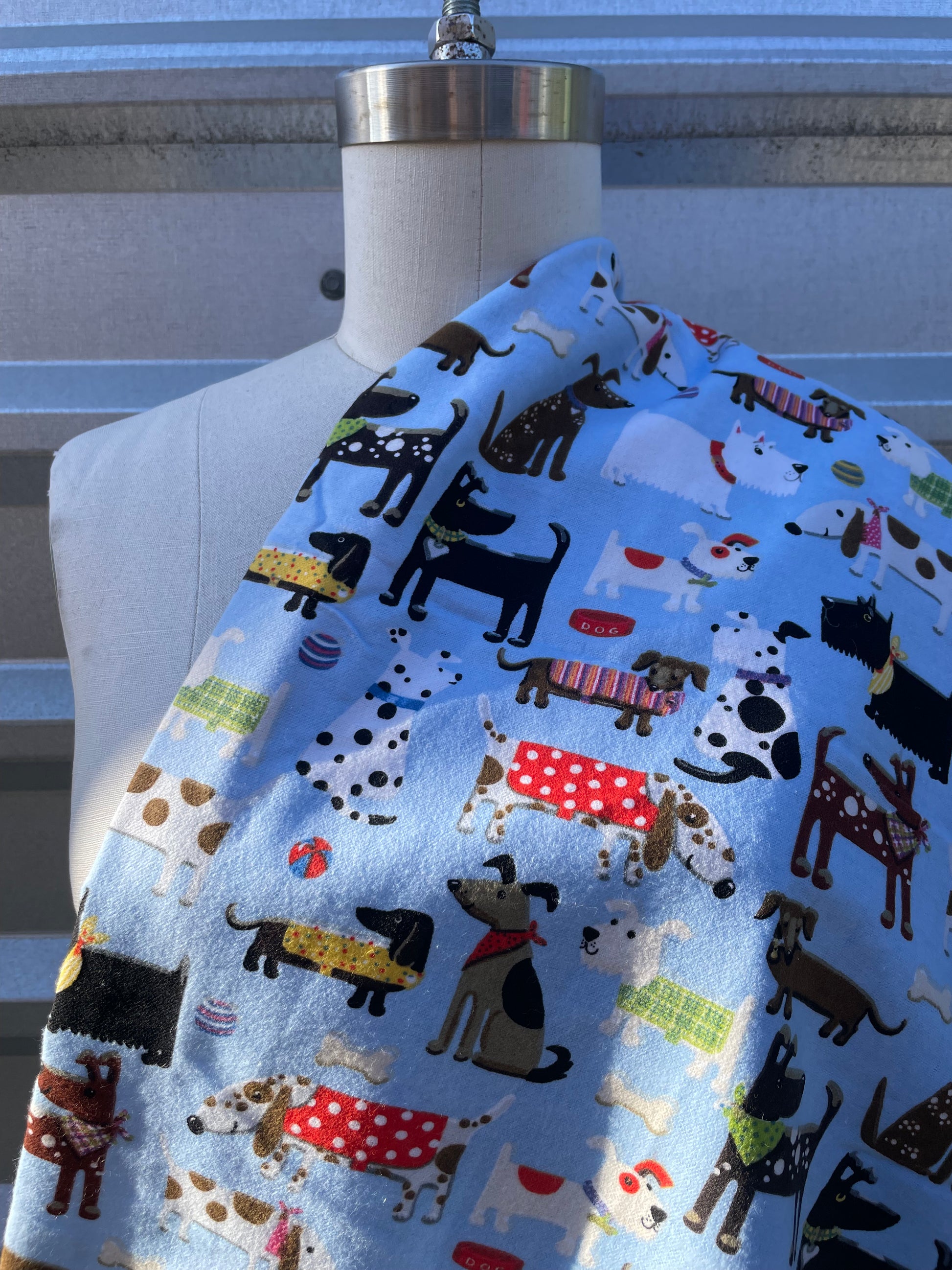 Multi Color Dog Animal Print Cotton Burhsed Flannel "Puppy Power"