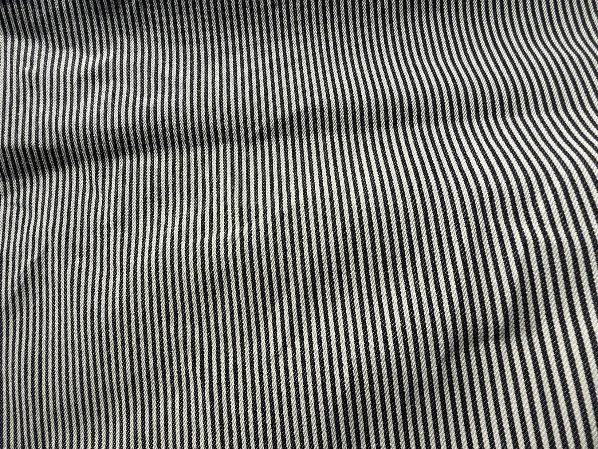 This lightweight cotton spandex denim features a subtle navy and white thin stripe pattern, perfect for your next sewing project. Its deadstock quality offers both uniqueness and sustainability, providing a soft stretch that ensures comfort and ease of movement. Ideal for creating stylish, breathable garments with a touch of classic denim charm.