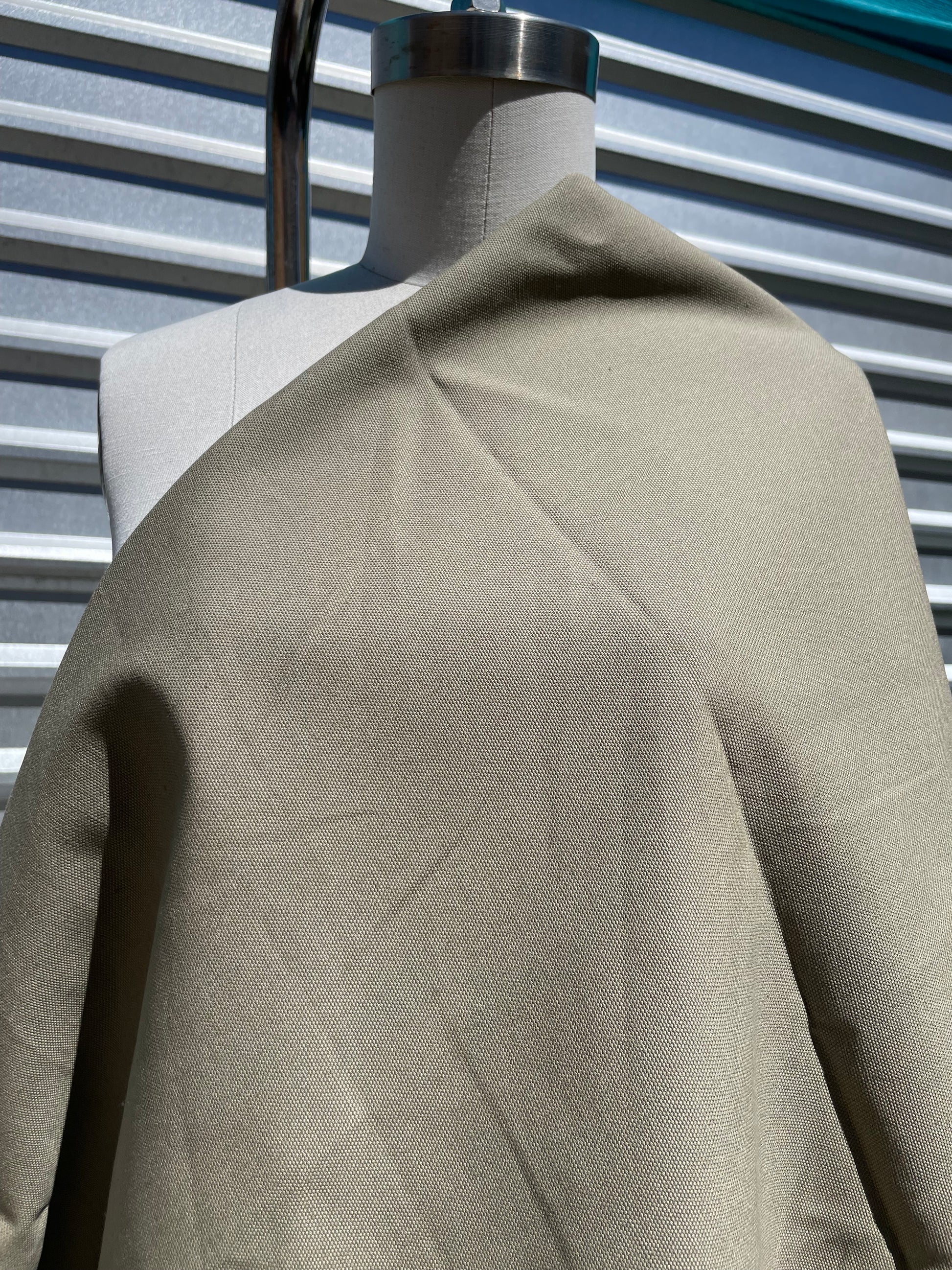 Introducing "Arizona Tan": a playful take on classic beige. Made from 100% cotton duck canvas, this 10 oz fabric features a unique olive tint and the benefits of being deadstock. Perfect for your next sewing project!