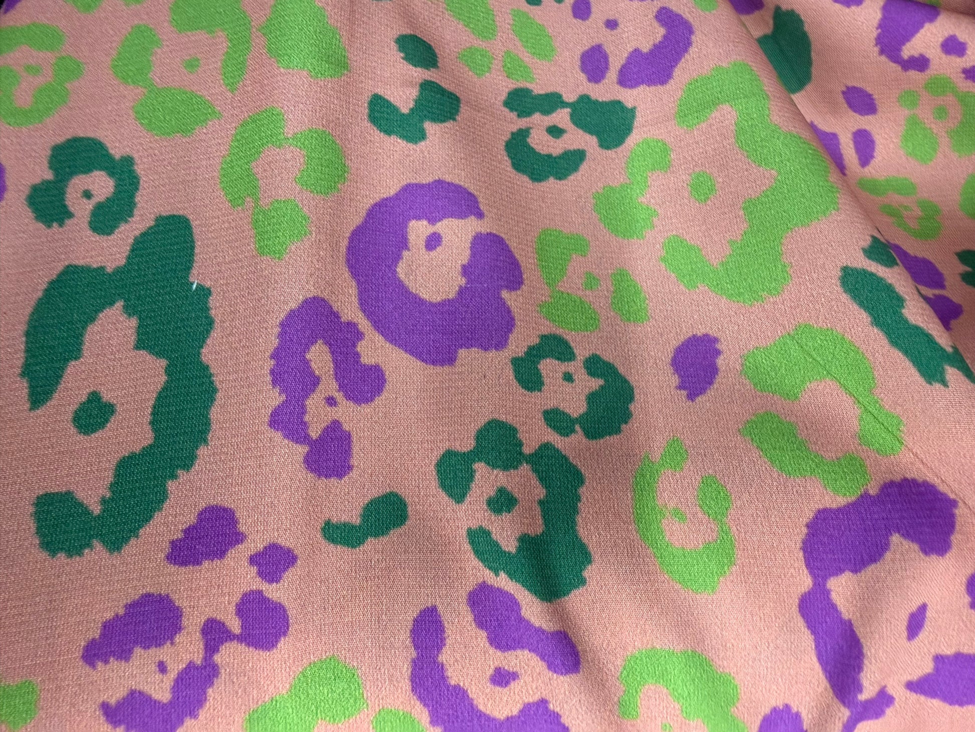 Peach Purple Green Leopard Print Polyester Crepe "Spiked Punch"