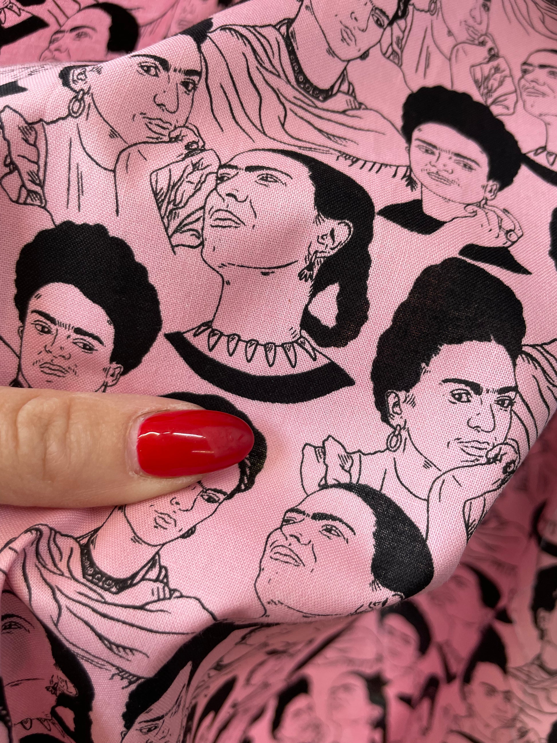 Pink Black Frida Kahlo Portrait Cotton Poplin “The Legend”