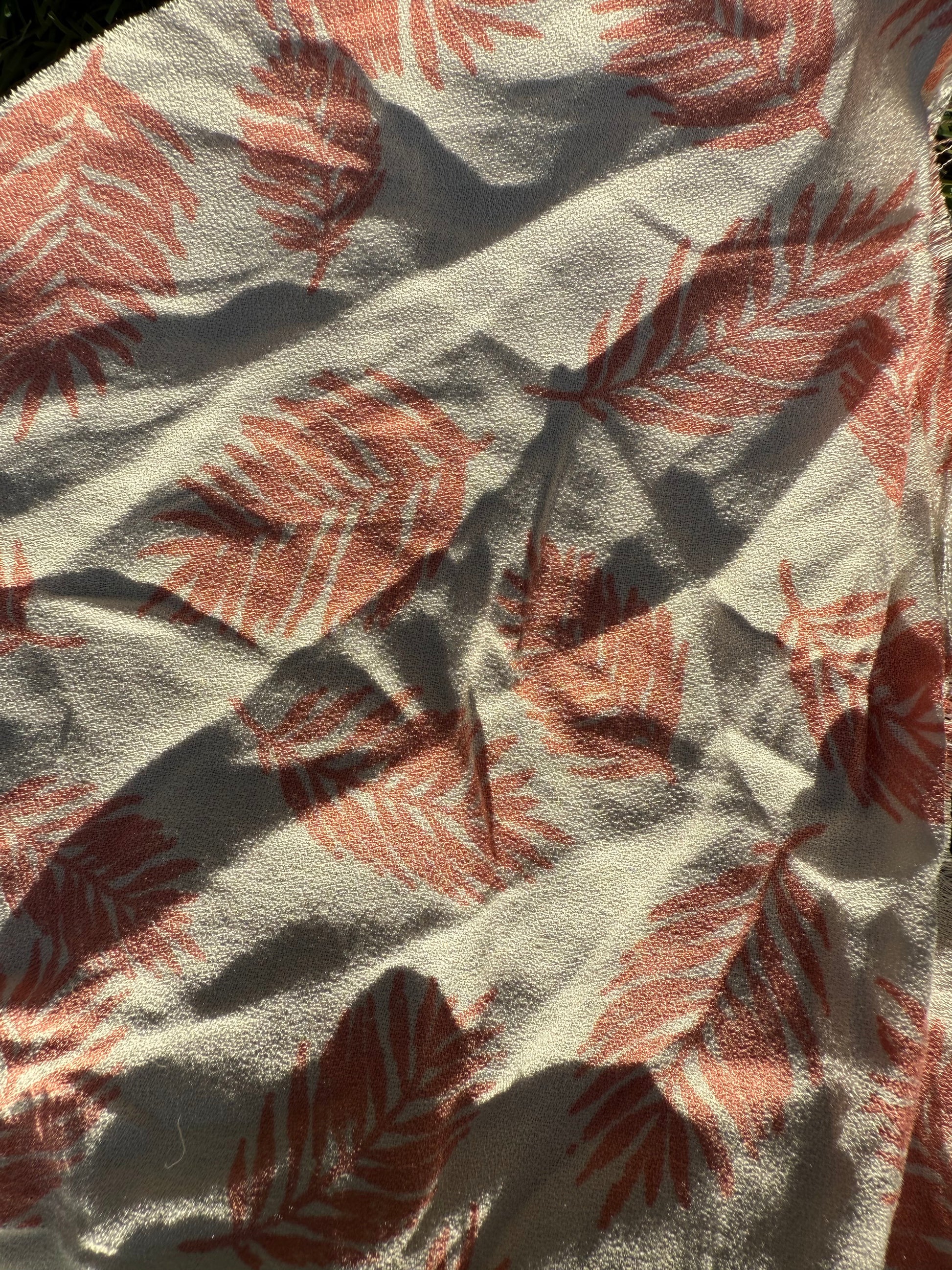 Float into your next sewing project with this Pink Cream Feather Print Woven Rayon Crepe. Delicate and soft, its light texture makes it perfect for playful dresses or blouses that feel as light as a feather. Add a touch of whimsy and grace to your wardrobe with fabric that’s just as fun to wear as it is to create.