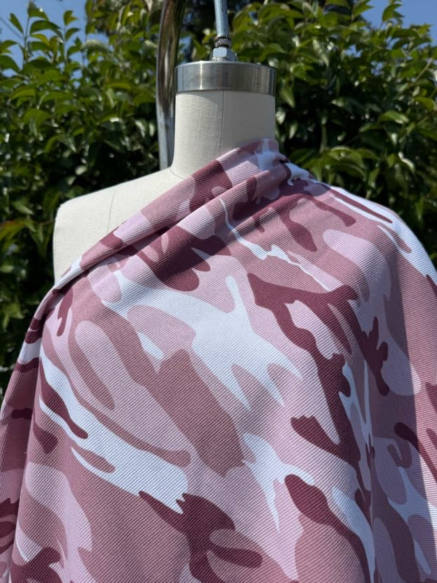 Add a playful pop to your sewing projects with this Pink Mauve White Camo Print cotton rib fabric. Inspired by early 2000s fashion, its bright camo design is perfect for creating cute baby tops that stand out. Soft, stretchy, and full of personality, this fabric invites you to craft fresh, fun pieces with a nostalgic twist.