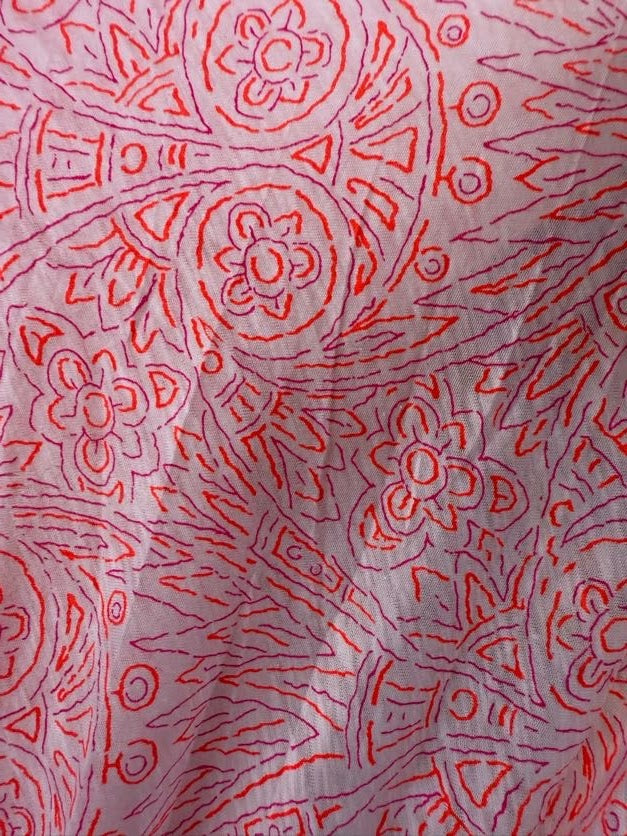 Experience vibrant creativity with our Pink Purple Orange Line Art Floral Neon Cotton Jersey Knit "POP Zentangle." This soft, breathable fabric blends neon hues with delicate floral patterns, perfect for fresh, breezy sewing projects. Its comfortable stretch and bold design make it ideal for standout apparel or unique crafts that demand both style and comfort. Elevate your next creation with this eye-catching, versatile cotton knit fabric.