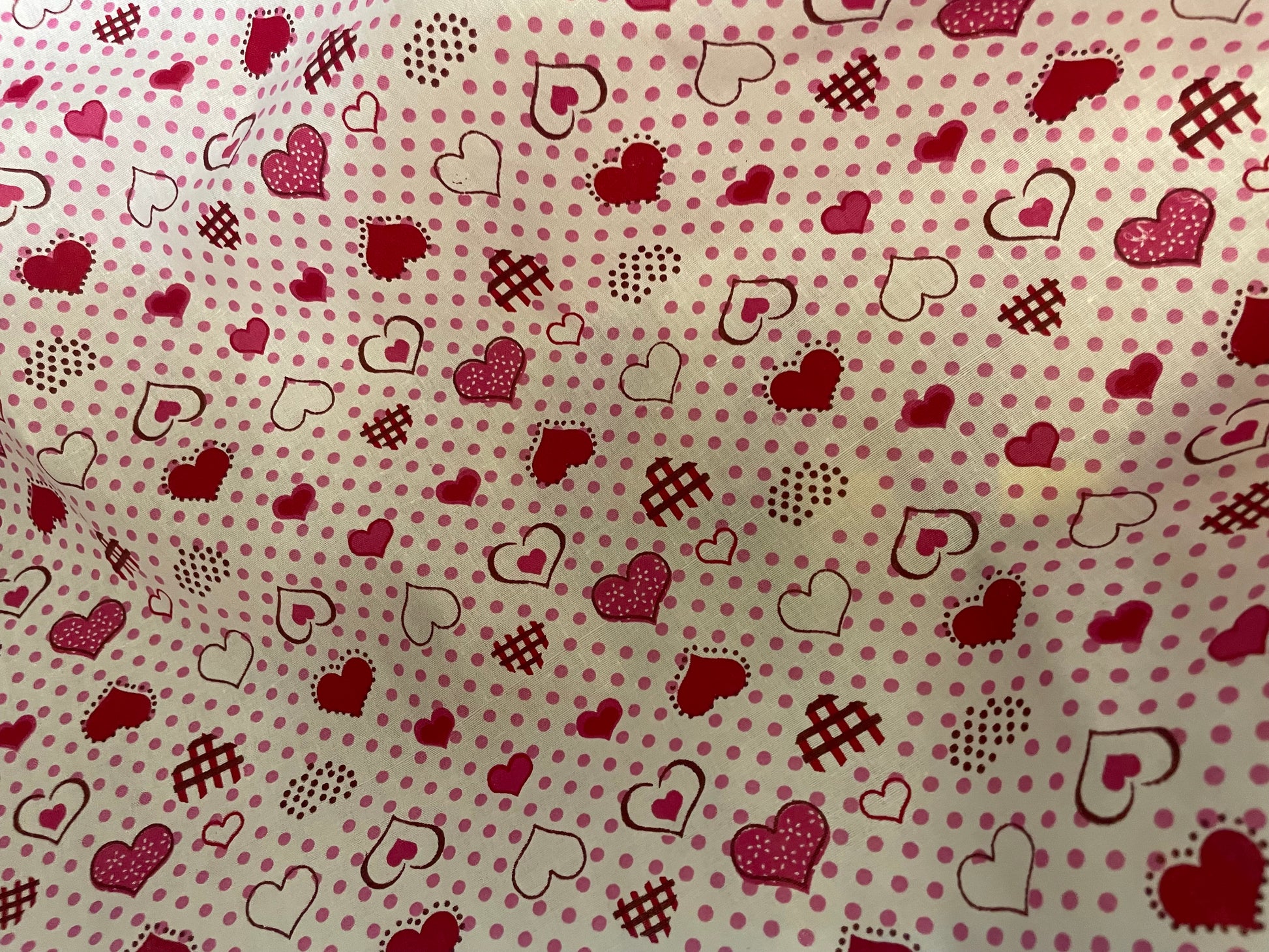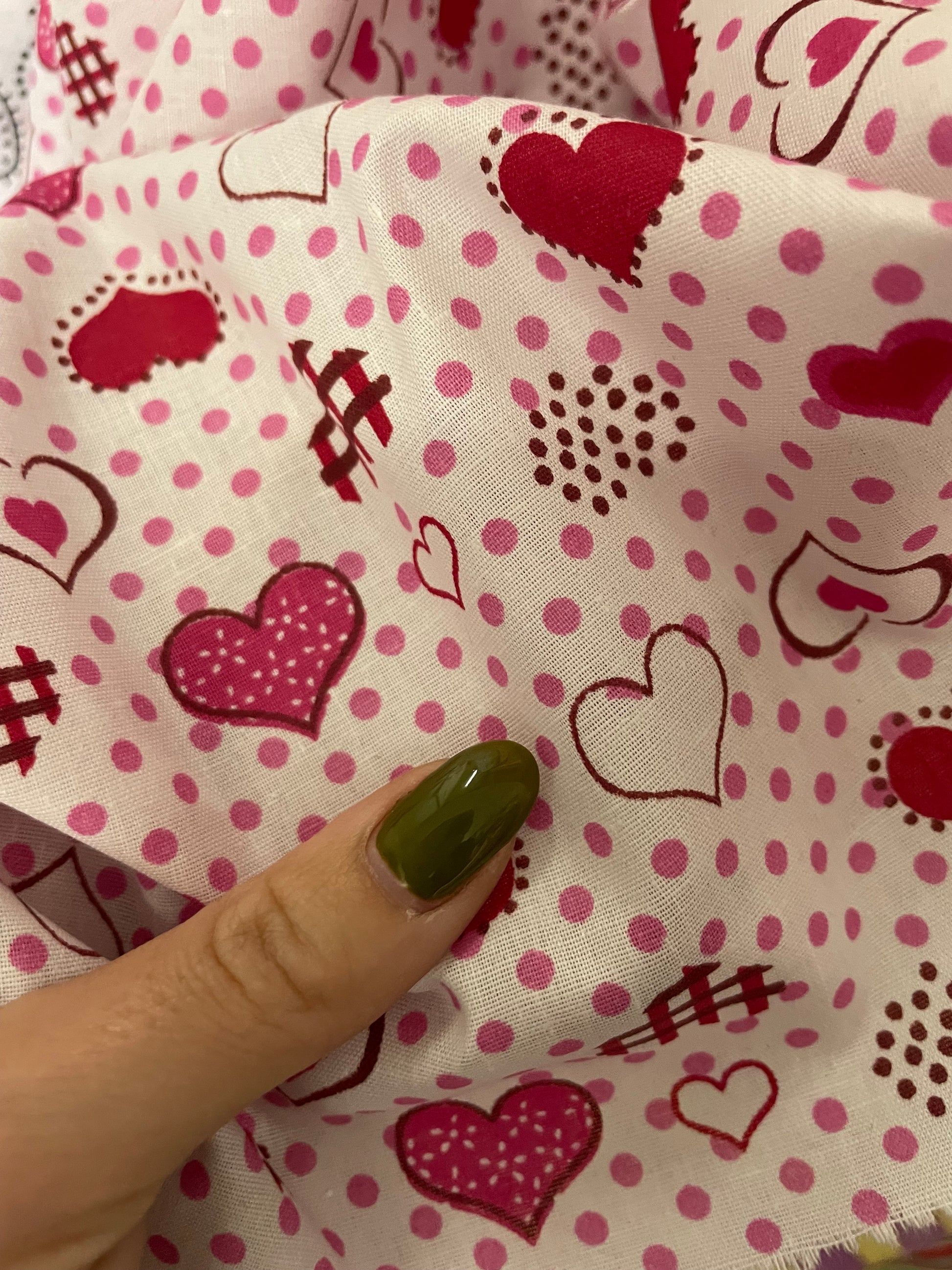 Pink White Retro Heart Vintage Cotton Lightweight Poplin "Heartbreaker"
