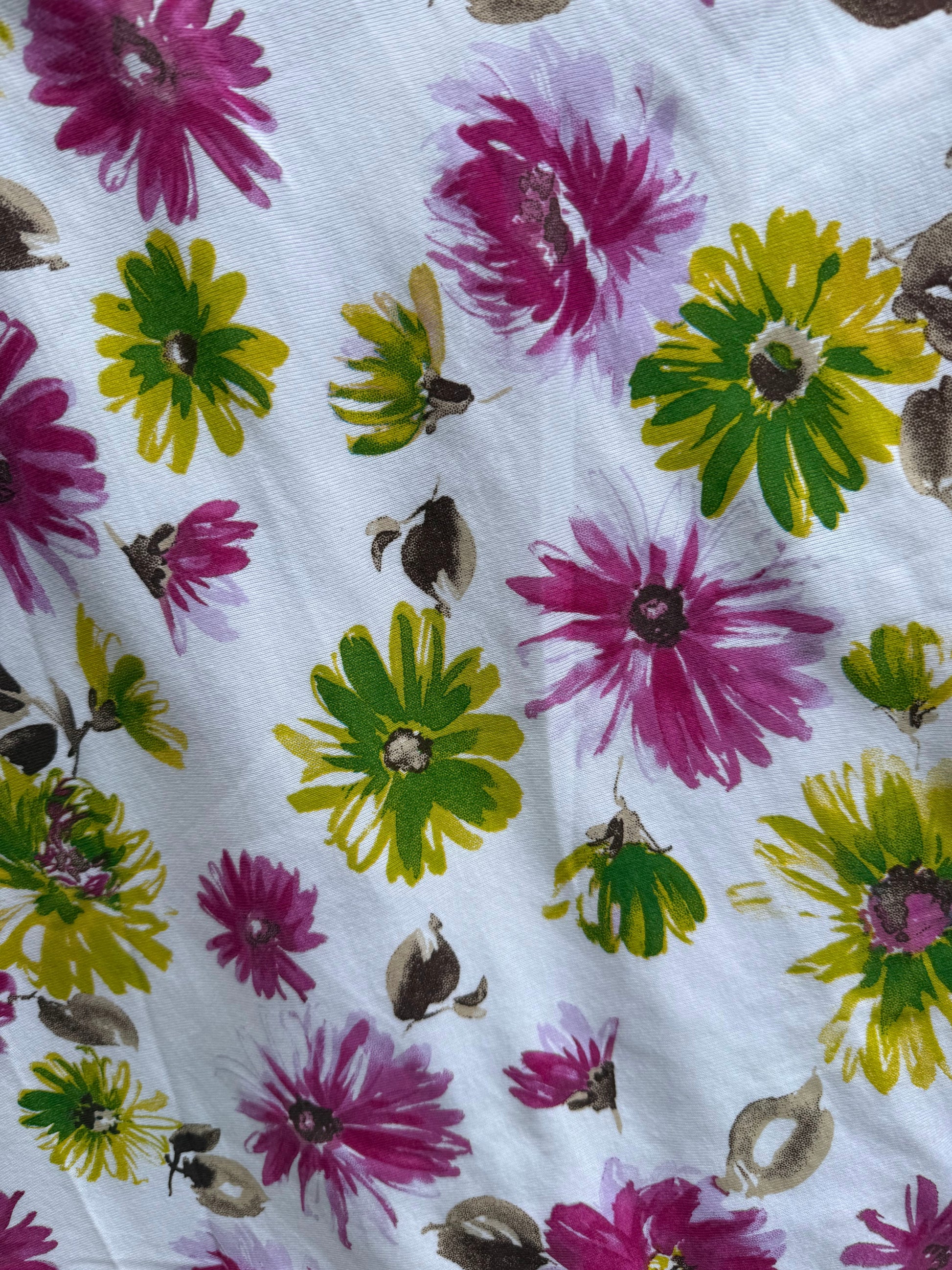 Purple Green Brown White Floral Vintage Cotton Jersey "Crazy Daisy"