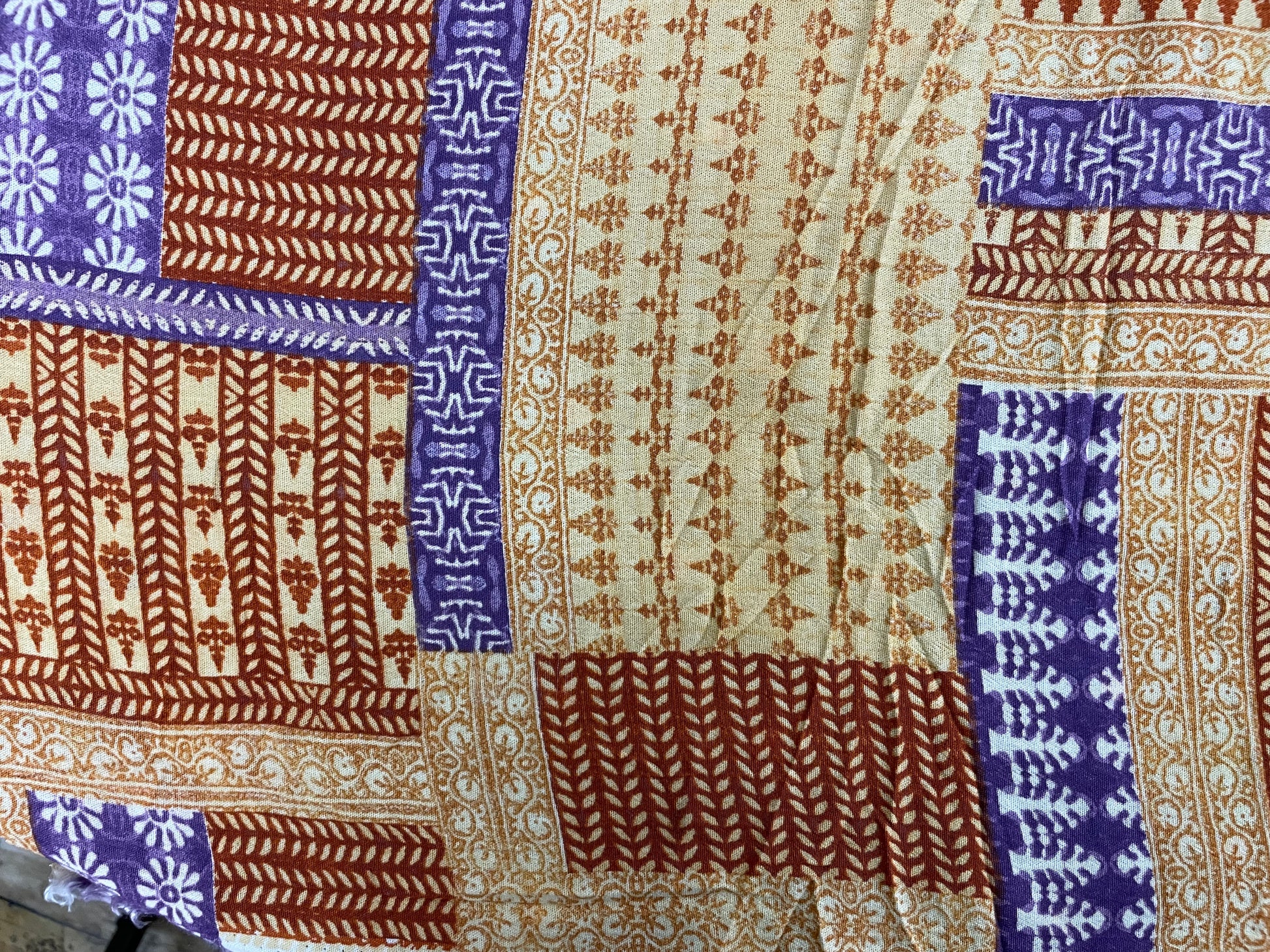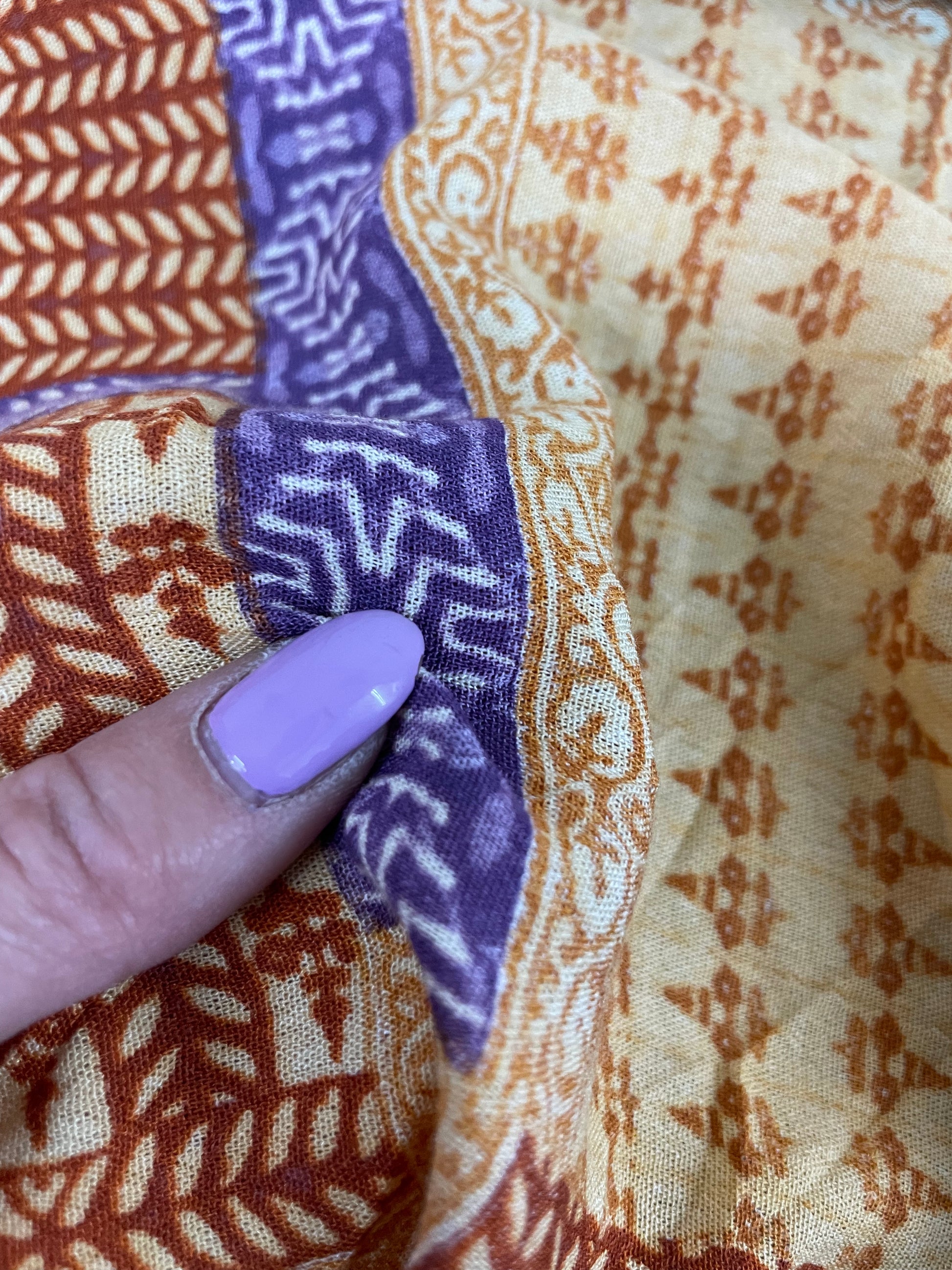 Purple Rust Yellow Gold Block Print Style Soft Rayon Crepe "Royal Block"