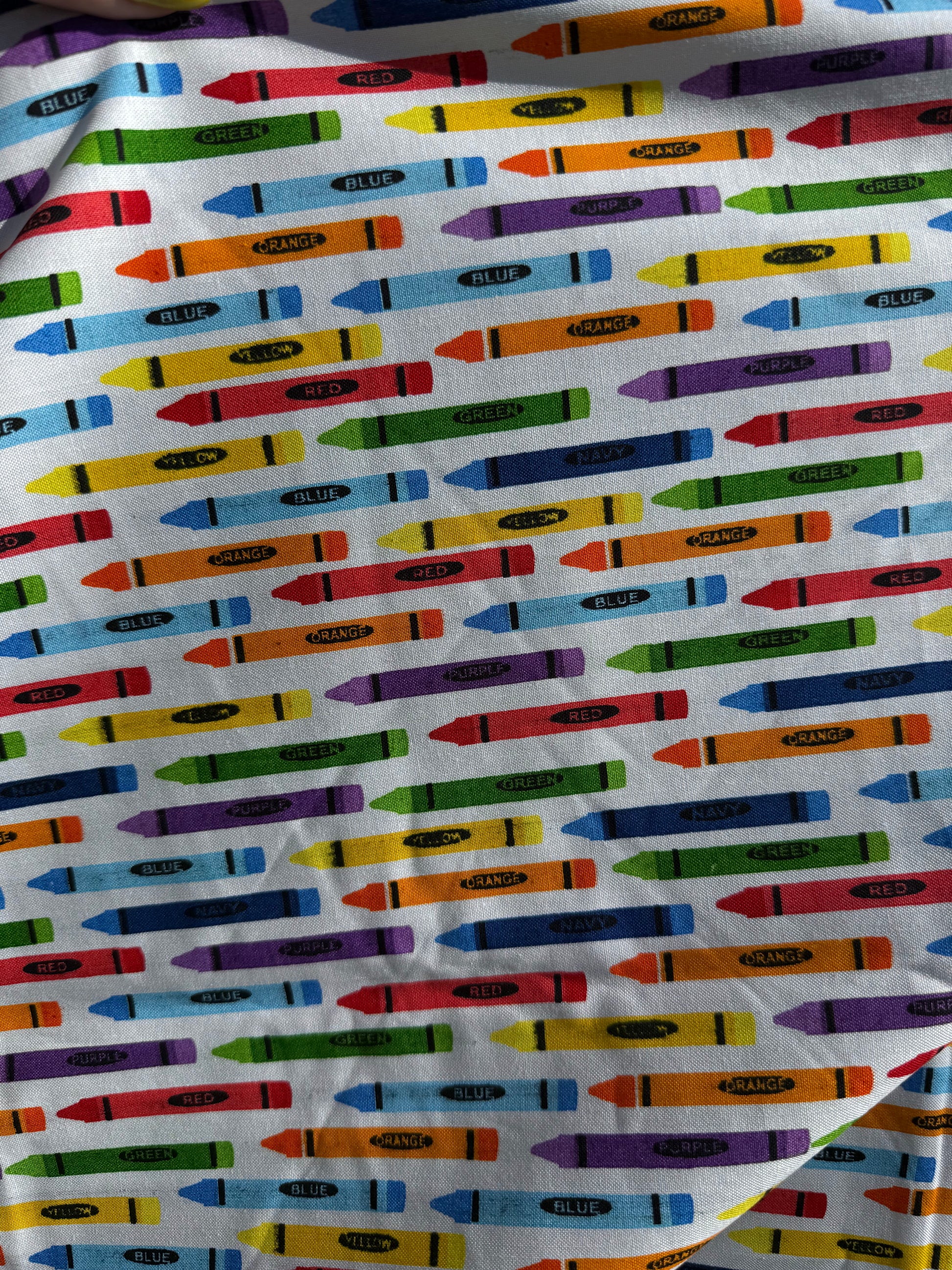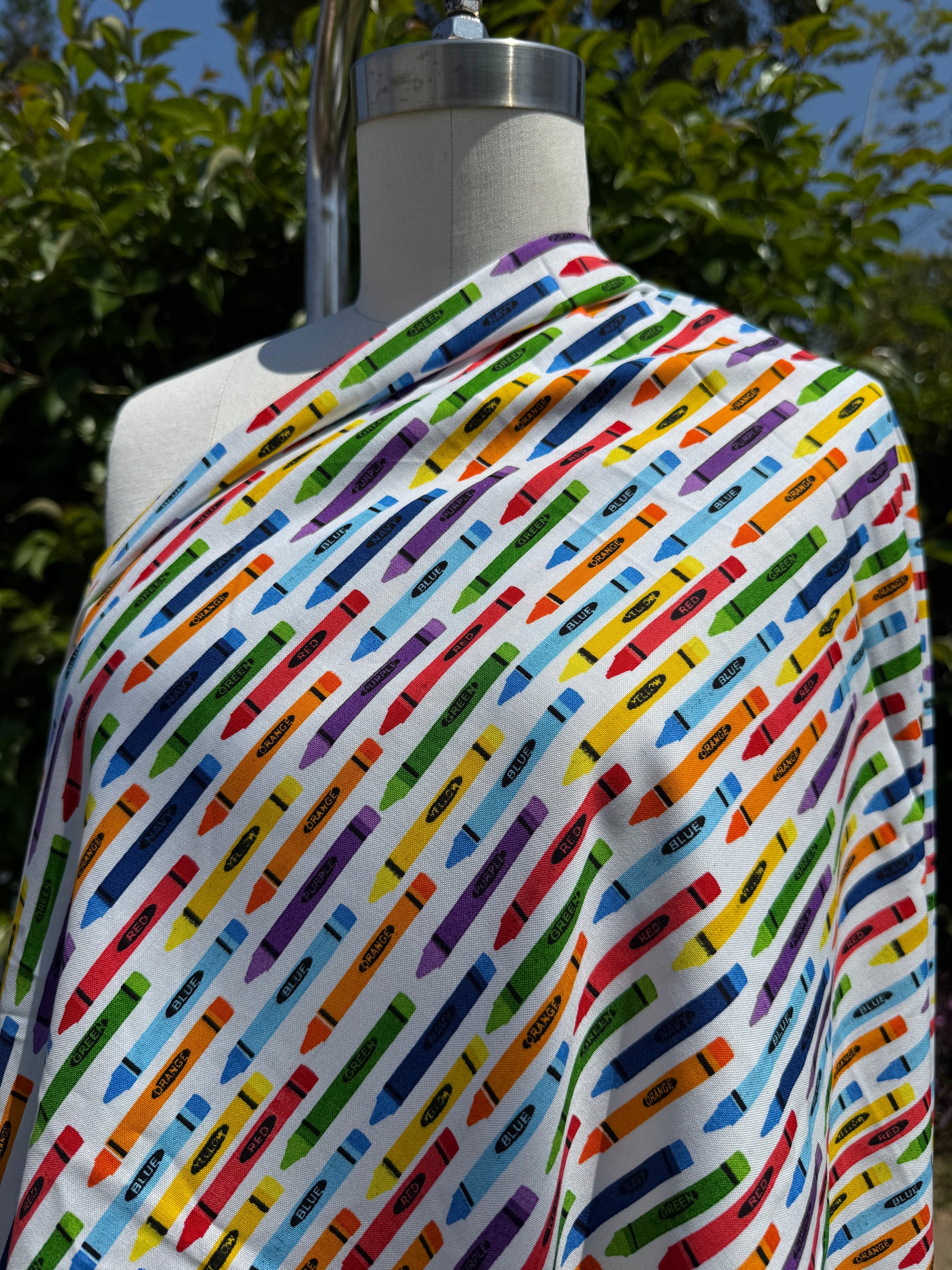 Red Orange Green Multi Color Crayon Print Cotton Poplin Woven "Ms. Frizzle Art Class"