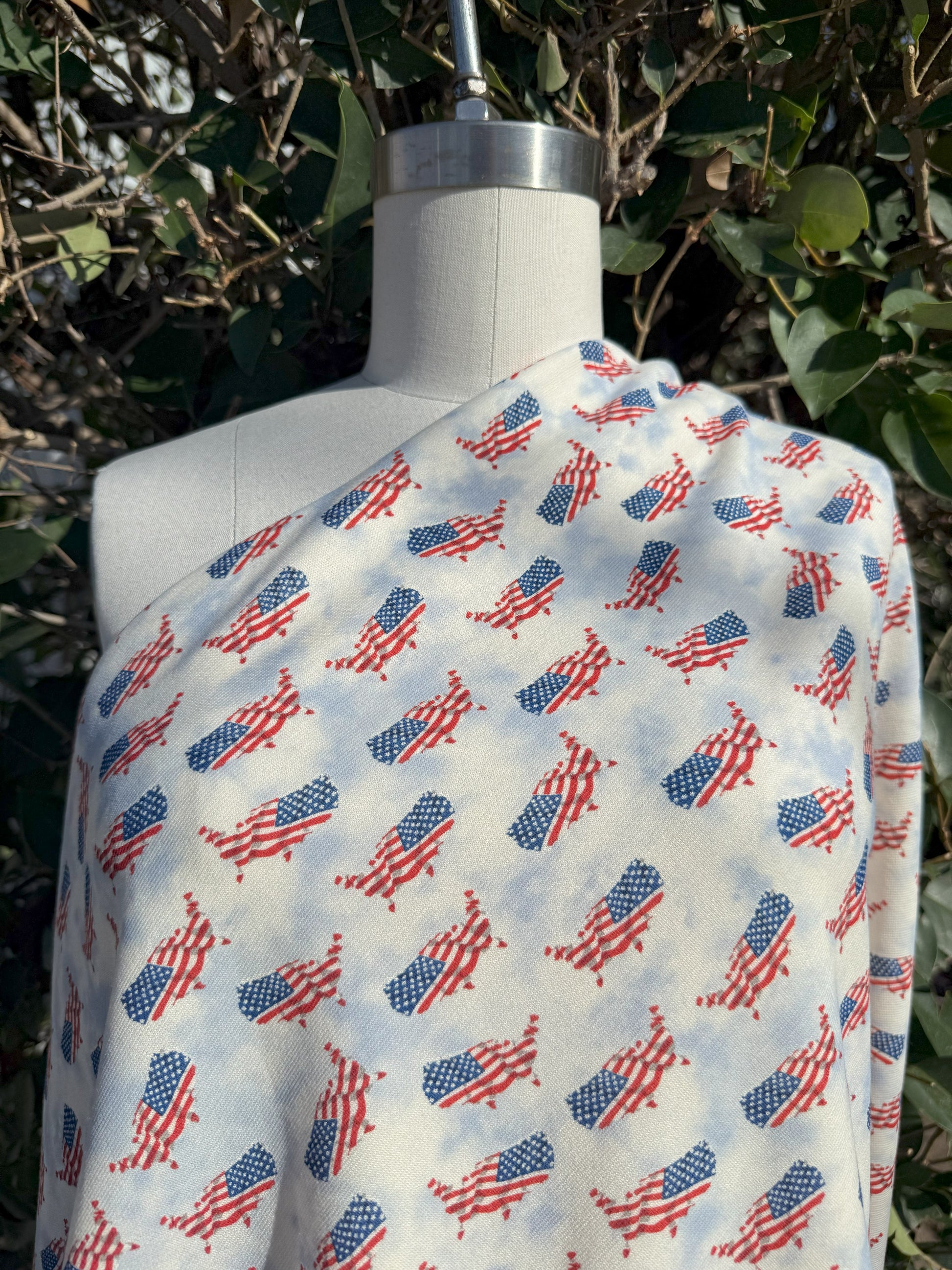 White Red Blue patriotic Star Stripe USA Polyester Spandex Ponte Knit "United Dream"