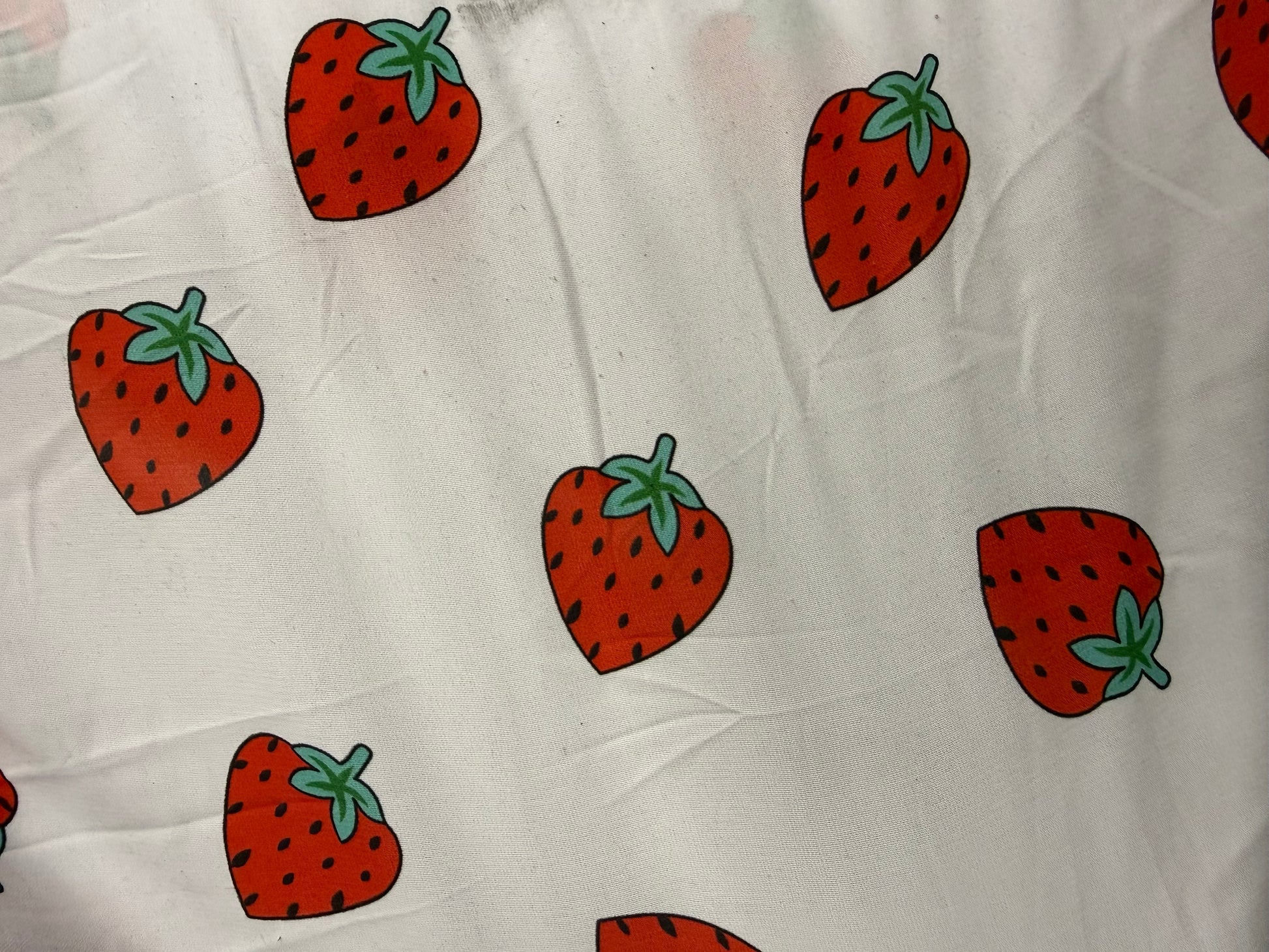 White Red Strawberry Print Polyester Crepe "Sweet Bite"