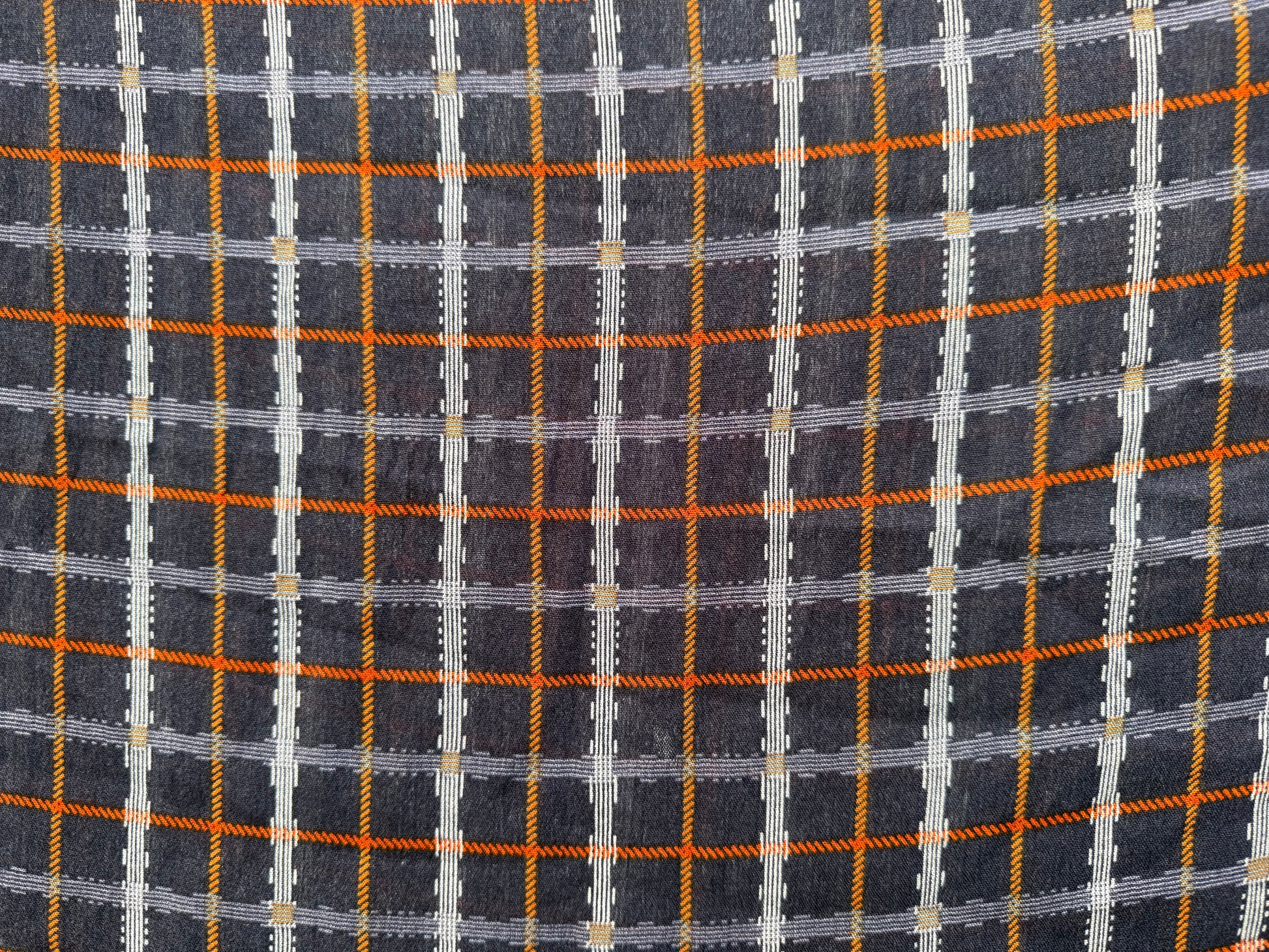 Yellow Orange White Blue Plaid Rope Motif Rayon Crepe "Roped Up"